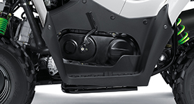 The control levers on the KFX50 are sized to suit young riders and placed within reach of the ATV rider.