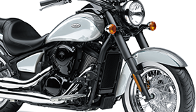 41mm front forks provide excellent rigidity and 150 mm of travel – the most in its class. 32-degree rake angle for excellent straight line tracking while having a low and solid look. Wide fork pitch for classic cruiser feel.