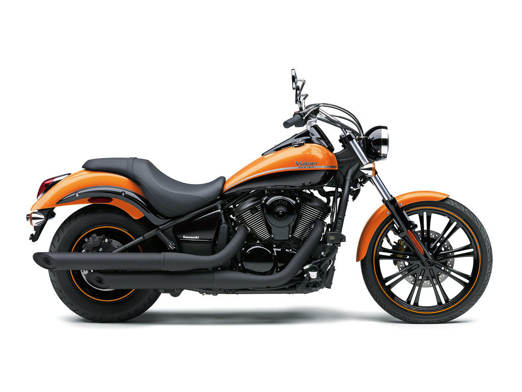 The Vulcan 900 Custom’s 903 cm³, liquid cooled, 4 stroke, V-Twin fuel injected engine with fine atomizing injectors offer great, big bike style. The finely tuned engine supports the low and mid range, making it easy to get rolling from stop and allowing the rider to short shift ‘big bike’ style.