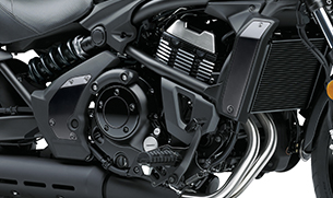 Liquid-cooled, DOHC, 8-valve 649 cm³ Parallel Twin, fuel injected. Delivers smooth performance in the low and medium rpm ranges. The engine was tuned for rider-friendly power characteristics that will inspire confidence in all riders. The Vulcan S offers smooth starts, smooth acceleration, and a satisfying pull when accelerating. The Vulcan S is fitted with the Kawasaki neutral finder; when stationary in first gear, just shift up and it will easily find neutral.