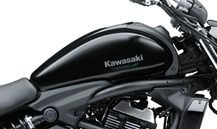 Tear drop-style fuel tank adds a cruiser-style touch. With its 14 litre tank capacity and the Parallel Twin engine’s good fuel economy, the long range offered by the Vulcan S means riders can go longer between fill-ups—convenient in town, and reassuring when out on a daytrip.