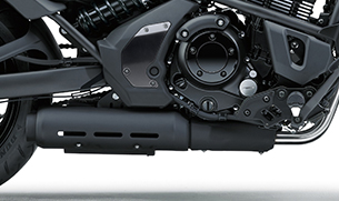 Attractive bend of the exhaust pipes and an under-engine muffler arrangement contribute to the Vulcan S’s attractive styling.