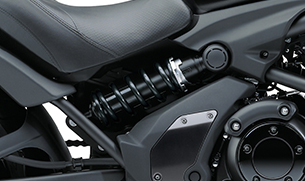 Elegant pipe perimeter frame is a key component of the Vulcan S’s identity. The bike’s bodywork accentuates the frame. The design of the frame, rear suspension and swingarm create an integrated line running from the front of the bike to the rear hub. A pipe frame of high-tensile steel gives the bike a lightweight appearance.