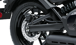 The Vulcan S is equipped with front and rear ABS disc brakes. The 300mm front is gripped and 250mm rear brake rotors are gripped by a twin-piston caliper at the front and a single piston caliper for ample stopping power.