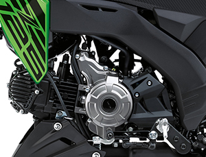 Designed to have a sporty character, the quick-revving engine pulls smoothly right to its redline. Superior passing performance is handy when riding in city traffic. Simple and reliable air-cooled, SOHC, 2-valve Single revs smoothly to the high-rpm range, with strong acceleration in the everyday range. Maximum power is 7.1 kW (9.6 PS). The Z125 PRO engine is fitted with an easy to service high quality oil filter for a longer engine life.