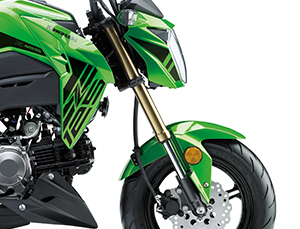 The Z125 features dual disc brakes, ensuring sure stopping power to match its sporty handling.
