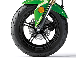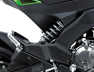 30 mm diameter inverted front fork offers excellent rigidity while keeping unsprung weight low for sporty riding potential. It features a lightweight aluminium upper triple clamp and has a long 100 mm stroke. Settings contribute to the Z125’s nimble handling. The inverted fork also contributes to sporty looks.