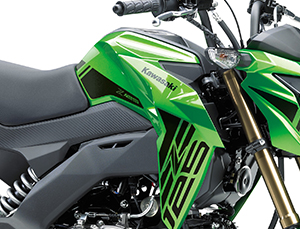 The Z125 PRO KRT Replica, riders will find the looks and quality of a much larger bike. Styling emulates the aggressive design of Kawasaki’s other Z models, creating an eye-catching package that appears ready to launch into action even when sitting still. KRT versions features Kawasaki Racing Team decals on the fuel tank and front fender. Carbon decals on the taillight shroud, rear wheel inner fender and the side covers.