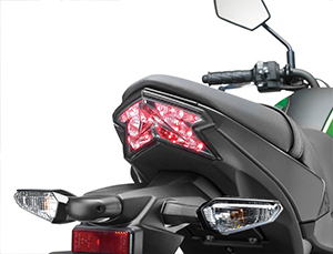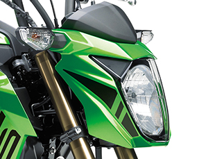 Compact headlamp cowl is one of the key styling elements of the aggressive Z design. Sporty, single headlamp design contributes to the bikes’ slim image.