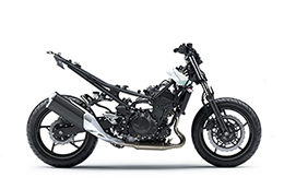 The Z400 features a trellis frame similar in design to that of the Ninja H2. Kawasaki’s advanced dynamic rigidity analysis was used to ensure optimum rigidity with light weight. The engine is rigid-mounted and used as a stressed member. The new frame design contributes significantly to the bike’s low curb mass.