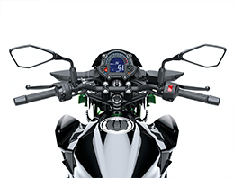 Wide set of the handlebar enables dynamic control by the rider and contributes to the Z400’s easy manoeuvrability. Slightly wider than the handlebar of the Z300, it offers even better control for low-speed manoeuvres
