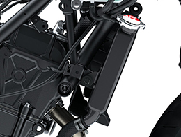 Innovative Kawasaki technology like the new radiator fan cover (patent pending) located behind the radiator directs hot air out to the sides away from the rider, reducing rider discomfort when stuck in heavy traffic. Redirecting the air also helps keep the tank, frame and other parts that contact the rider cooler, further increasing rider comfort.