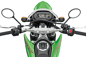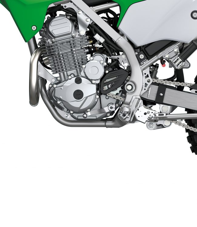 Designed from the start for off-road riding use, the all-new perimeter frame offers the handling stability needed for confident trail riding. Extensive feedback from Kawasaki test riders helped achieve the highly accommodating balance between engine and frame that enables a wide range of riders to enjoy the KLX230.