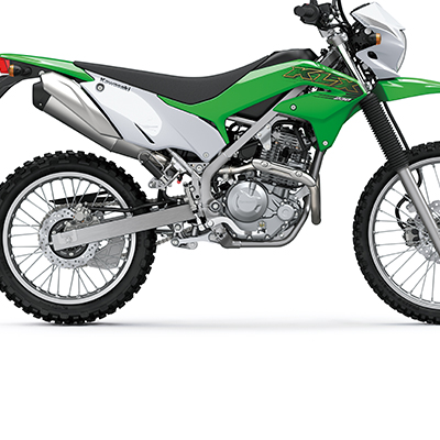 In addition to a powerful engine and compact frame that were both designed with trail riding in mind, the KLX230’s large-diameter wheels, long-travel suspension and ample ground clearance all contribute to its plentiful off-road capability. Front & Rear disk brakes provide great stopping power when riding on the trail.