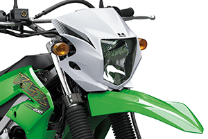 Like Kawasaki’s KX450 and KX250, the new KLX300R features bodywork designed to facilitate rider movement. The slim design of the frame and bodywork helps the rider grip the bike for increased control, while the KX-inspired seat design offers great freedom of movement for off-road riding.
