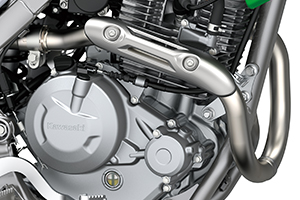 Designing the engine and frame together allowed greater design freedom. Great care was taken to minimise engine height, which allowed an optimal frame line to achieve the ideal rigidity balance as well as keeping the seat height at an appropriate level. The relatively short wheelbase contributes to the bike’s easy, manoeuvrable handling – another welcome feature for new and intermediate riders.